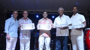 Durante la fiesta de premiación celebrada en el restaurant La Mona, el Señor Marcos De Moya y los nietos de la Familia De Moya recibieron un reconocimiento póstumo a su padre, Don Diego De Moya Canaán, de manos de Ricardo Hazoury y Mario Betances, por su compromiso, dedicación y entrega en el fomento del desarrollo de la Industria de la Construcción de República Dominicana.