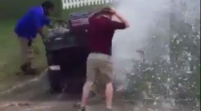 Esa persona chocó un carrito de golf contra un hidrante, causando una inundación en el área.