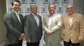 Ramón Sosa, Director Ejecutivo, Jaime Fernández, Presidente, Simón Mahfoud, Miembro y Harold Molina, Miembro, en la rueda de prensa del Torneo CENAPEC.