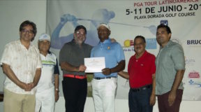 Desde la izquierda Paul Brugal, Pablo T Brugal, Carlos Elmudesi, Julio Santos (jugador profesional de golf, ganador), Avelino Sarante y Endy Sarante